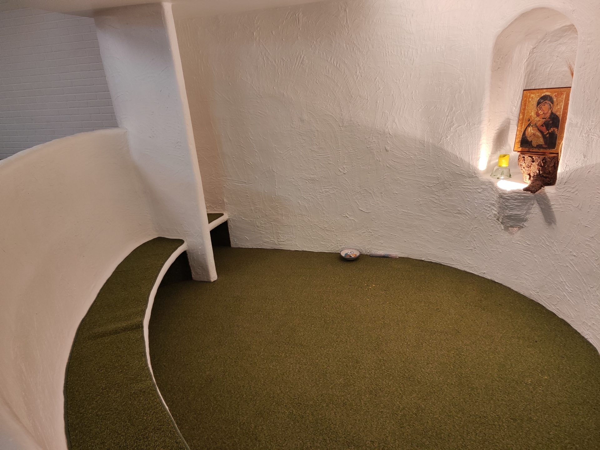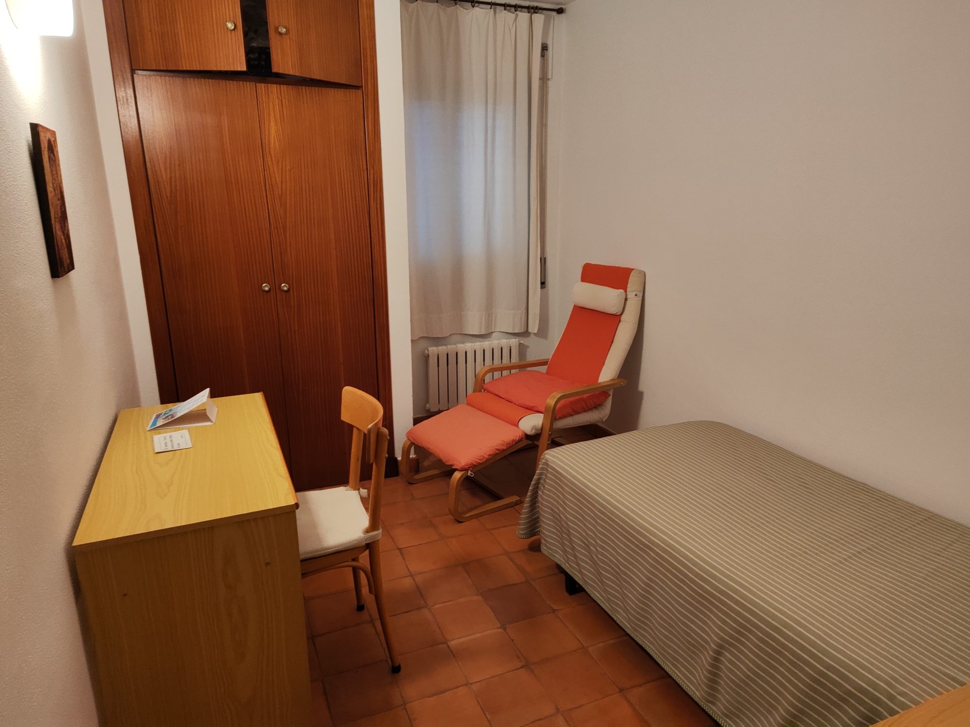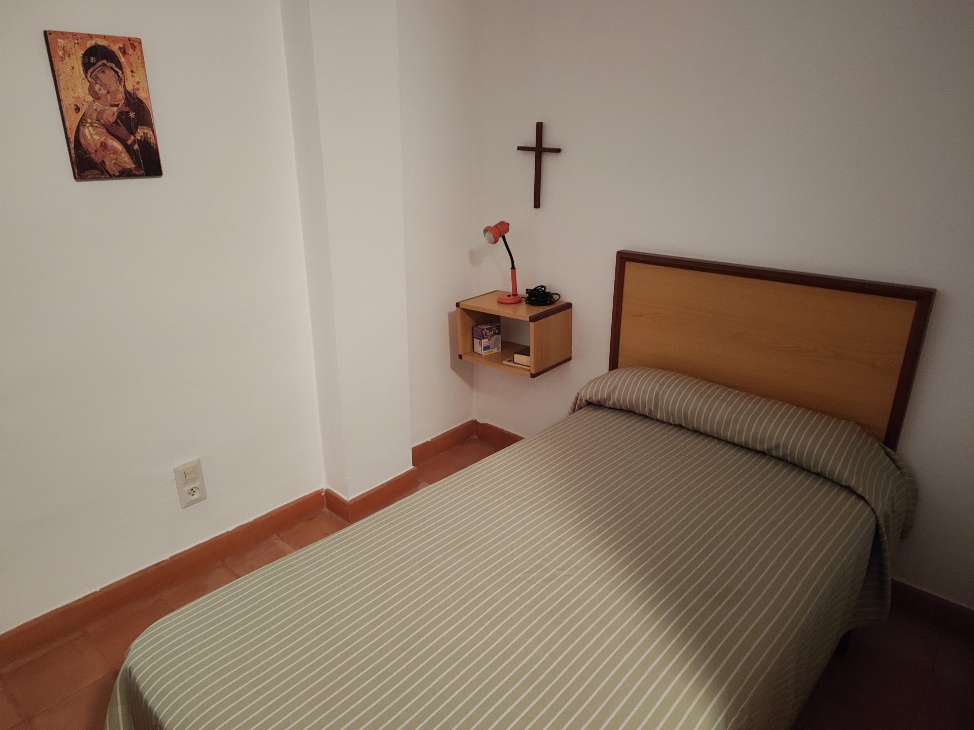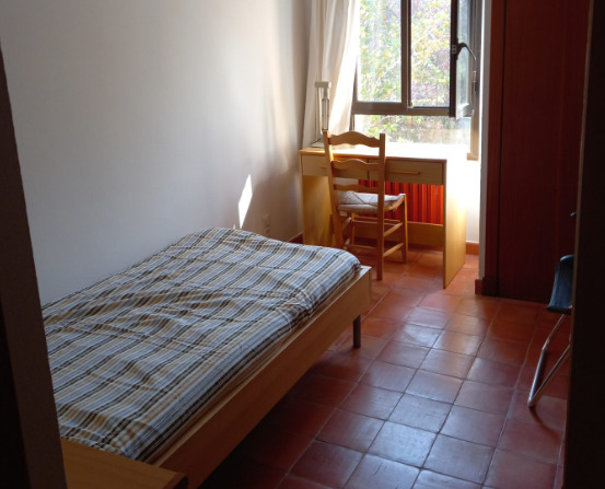 Cocina, cama, capilla, aseo, butaca, algunos libros de oración, y un jardín aislado, que favorece la experiencia de provisionalidad.